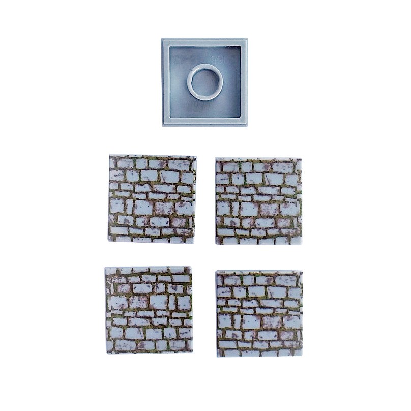Cobble stone with weeds printed on a genuine light bluish grey Lego© 2×2 tile. The perfect addition to your LEGO® driveway or medieval diorama!