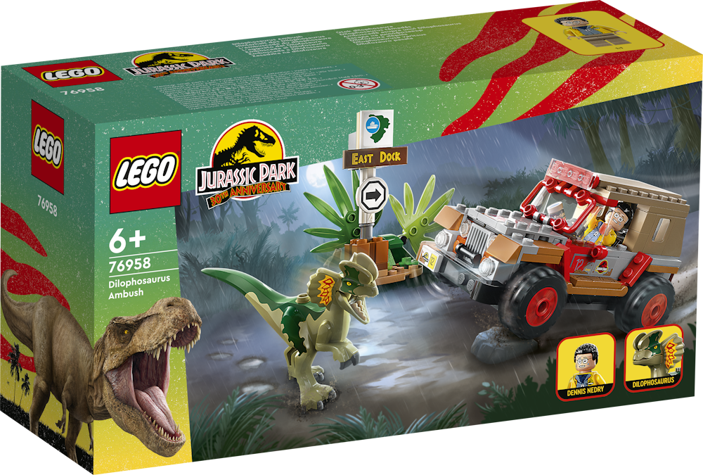 Dinosaur and car toy playset Inspire kids to recreate a memorable Jurassic Park scene and make up their own stories with this LEGO® Jurassic World Dilophosaurus Ambush (76958) building set