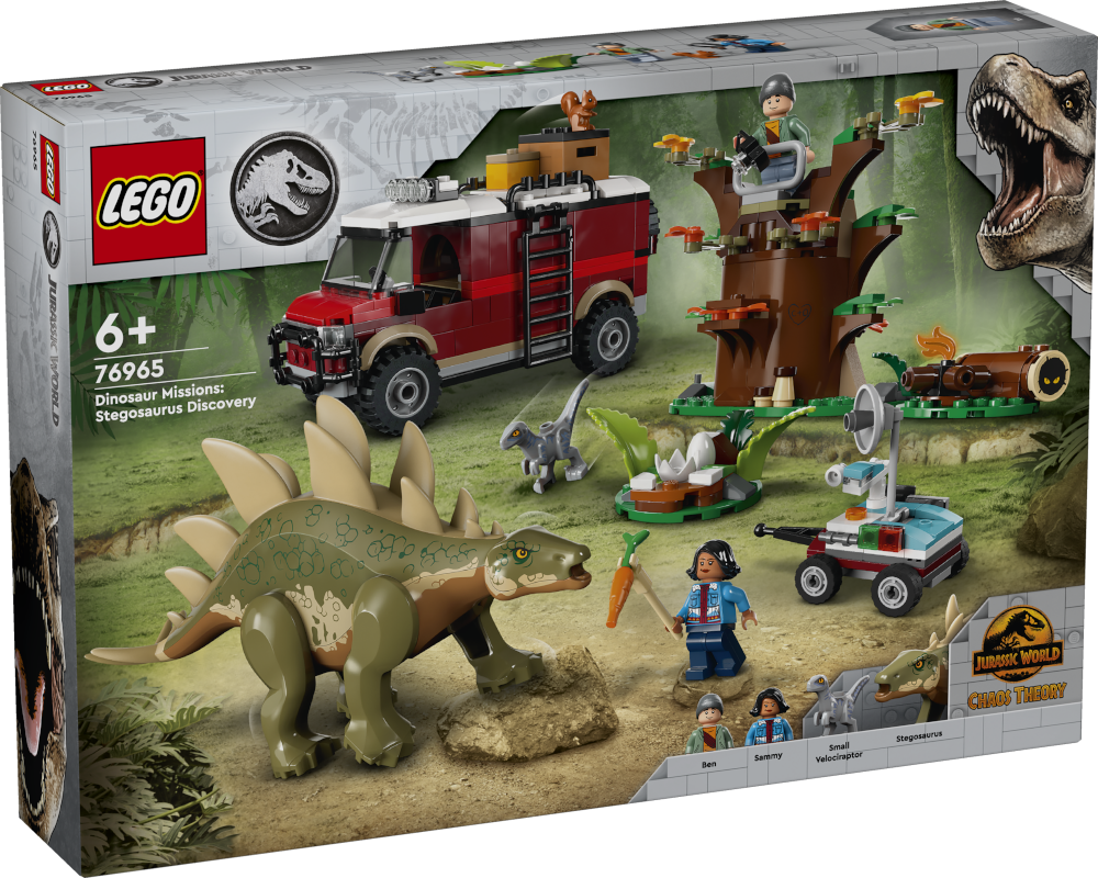 Creative adventure toy Features a molded LEGO® Stegosaurus with movable legs a small Velociraptor figure and Ben and Sammy minifigures to spark role play and stories