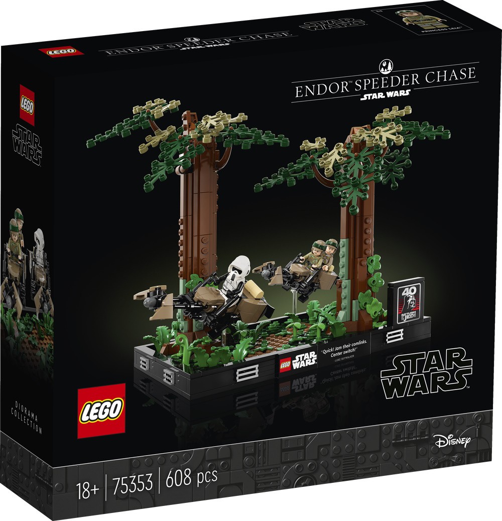 Detailed Endor Speeder Chase Diorama (75353) Create a dynamic LEGO® brick-built snapshot of the iconic speeder chase through the forests of Endor from Star Wars: Return of the Jedi