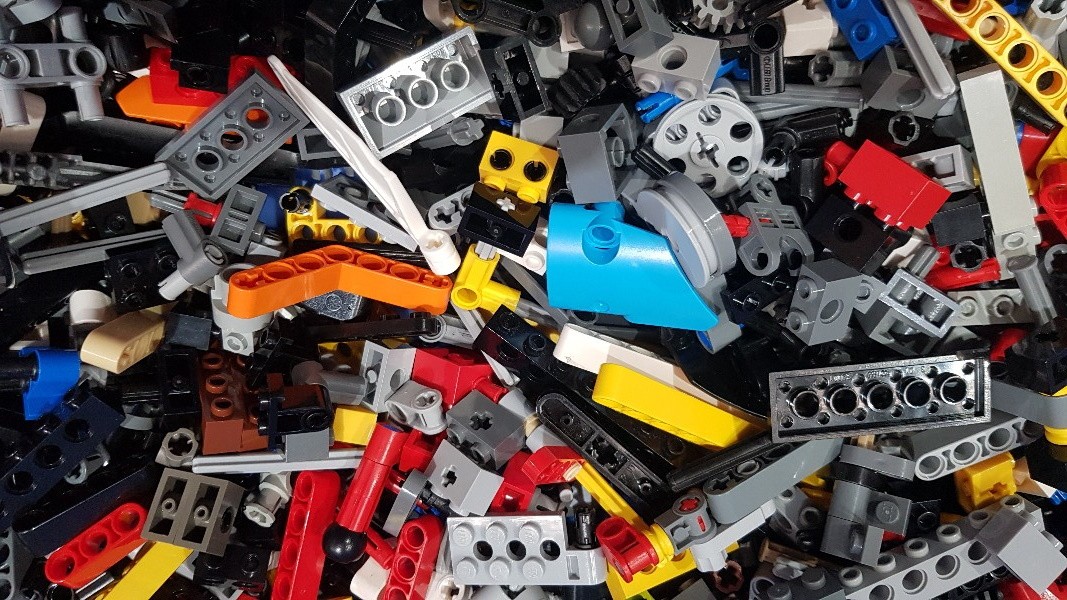 Pack contains 500g of randomly selected LEGO Technic parts including heaps of connectors pins beams and axles.