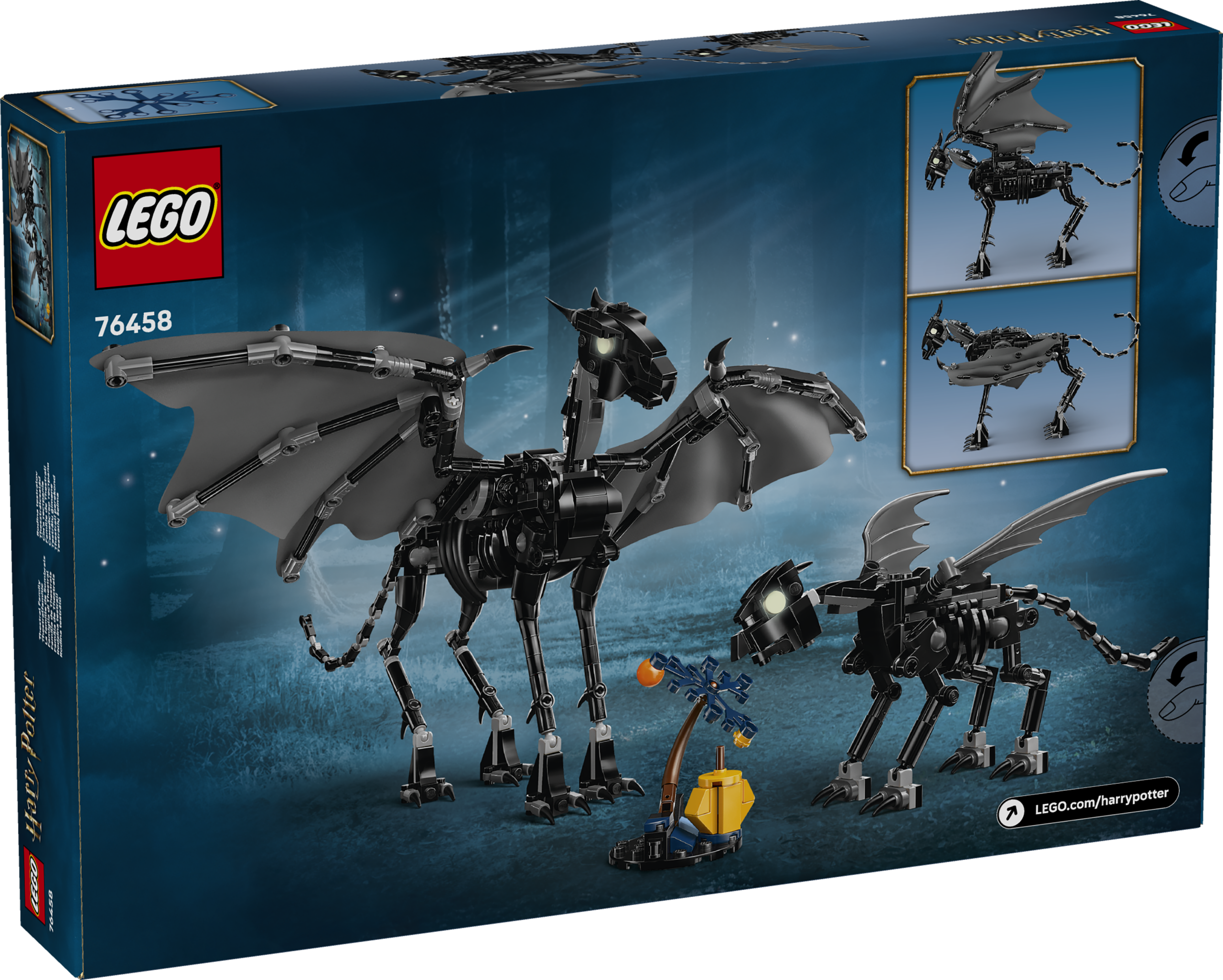 Spark kids’ imaginations with the first-ever brick-built Thestral family with these LEGO® Harry Potter™ mythical creature toy figures (76458). A wizard birthday present or holiday gift toy for girls, boys and any Harry Potter fans aged 10 and up, the set features adult and baby Thestral figures for nurture play. Each of the LEGO Harry Potter collectible figures has a posable head, wings and legs, and the adult Thestral has fabric wings that can be folded out for majestic flight poses. A small buildable tree hints at the Forbidden Forest™, where Thestrals live, to encourage creative storytelling. Enhance children’s building experience with the LEGO Builder app, where they can zoom in and rotate models in 3D, track their progress and save sets. This LEGO animals set offers your young wizard, witch or Muggle™ a fun creative activity to enjoy solo or with friends, and the builds can be used with other LEGO Harry Potter toys (sold separately) to bring new play possibilities.